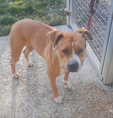 Femelle type croisée staffie fauve et blanche