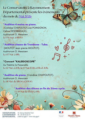 Élément structurant de la vie musicale et chorégraphique gapençaise, le Conservatoire à Rayonnement Départemental répond aujourd’hui à quatre grandes missions au travers desquelles il a pour ambition de faire grandir artistiquement et culturellement ses élèves :